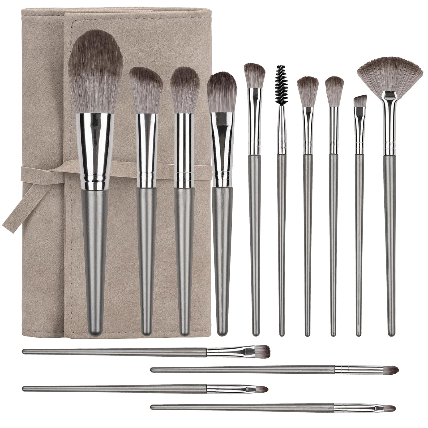 - FASHIONABLE DESIGN: The cosmetic brushes is made of the most prevalent and grayish color and elaboration bag, looks very fashionable and chic, a must-have in your makeup bag